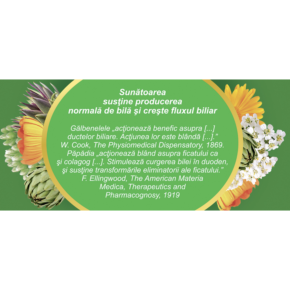 Contribuie la producerea normală de bilă și la creșterea fluxului biliar, ajutând astfel la o funcționare optimă a sistemului digestiv.