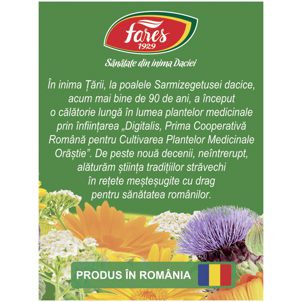 Suplimentul alimentar Vezica Biliară de la Fares 1929 este un ceai din plante medicinale, un amestec formulat cu grijă pentru a susține sistemul digestiv. Printre ingredientele sale se numără anghinarea, coada șoricelului și gălbenelele.