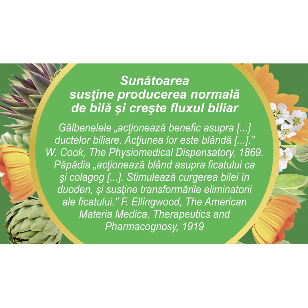 Contribuie la sustinerea confortului digestiv și buna funcționare a vezicii biliare