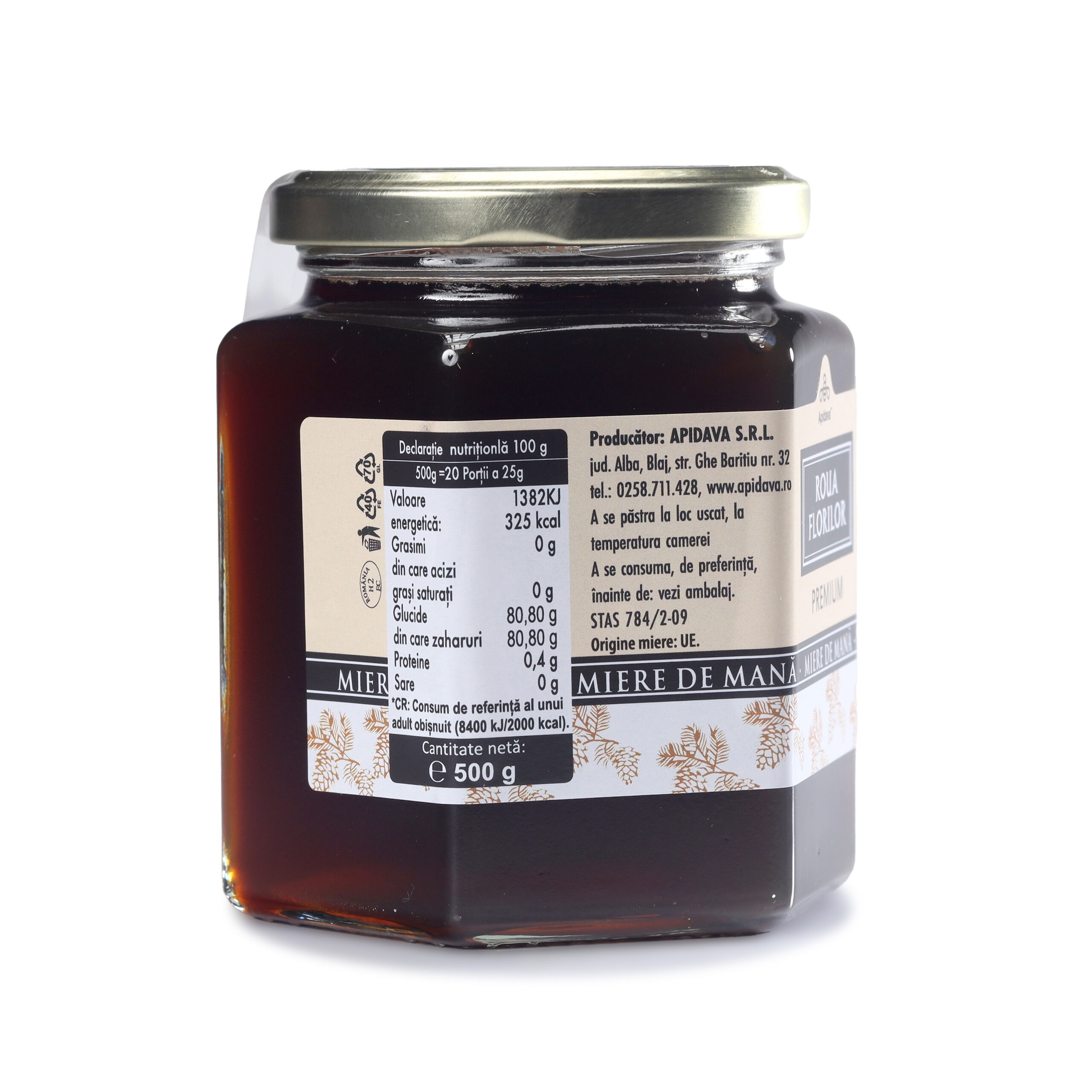 Miere de mana Roua Florilor, 500 g, Apidava [5941185000322]