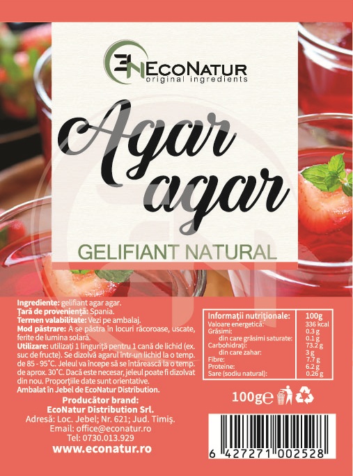 Gelifiant agar agar*.*Acest produs nu conţine şi nu este alcătuit din organisme modificate genetic.