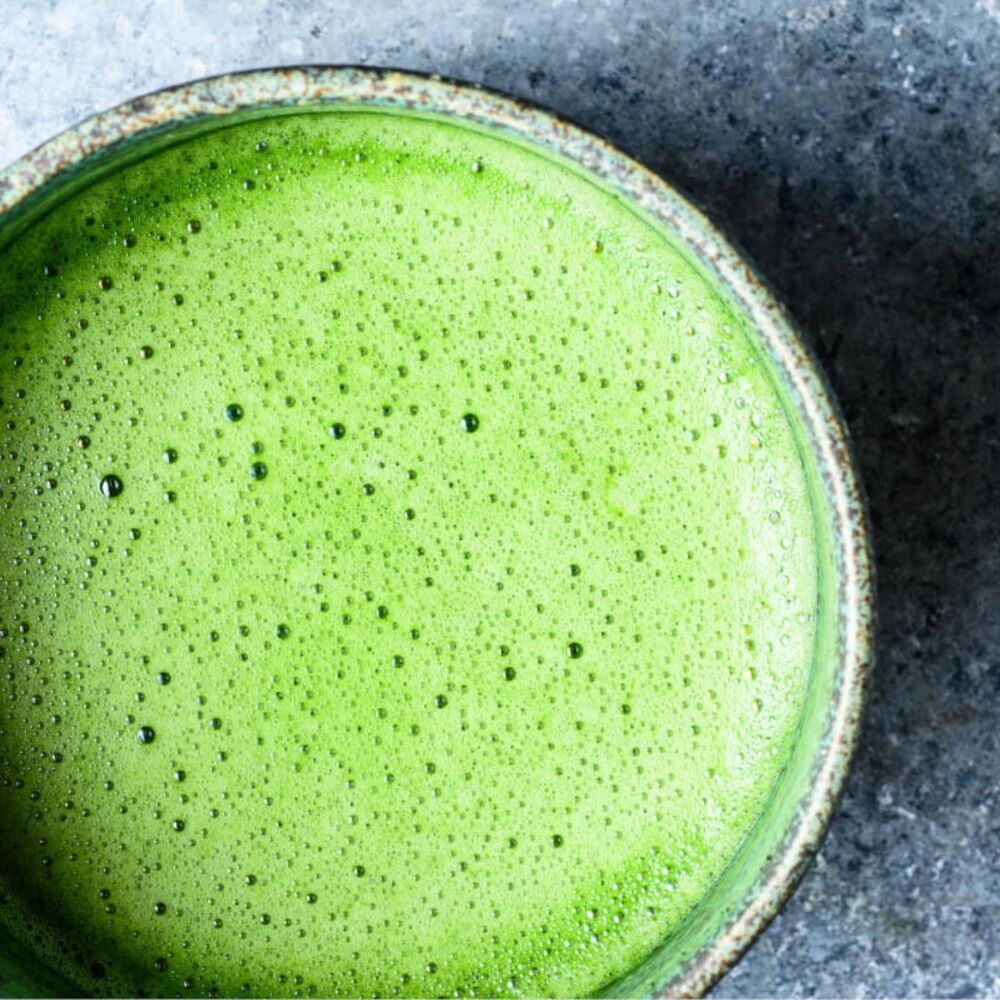 Se amestecă o linguriță de matcha cu 150ml de apă (max. 80°C) folosind un pămătuf de bambus (Chasen) sau un frother până se omogenizează.