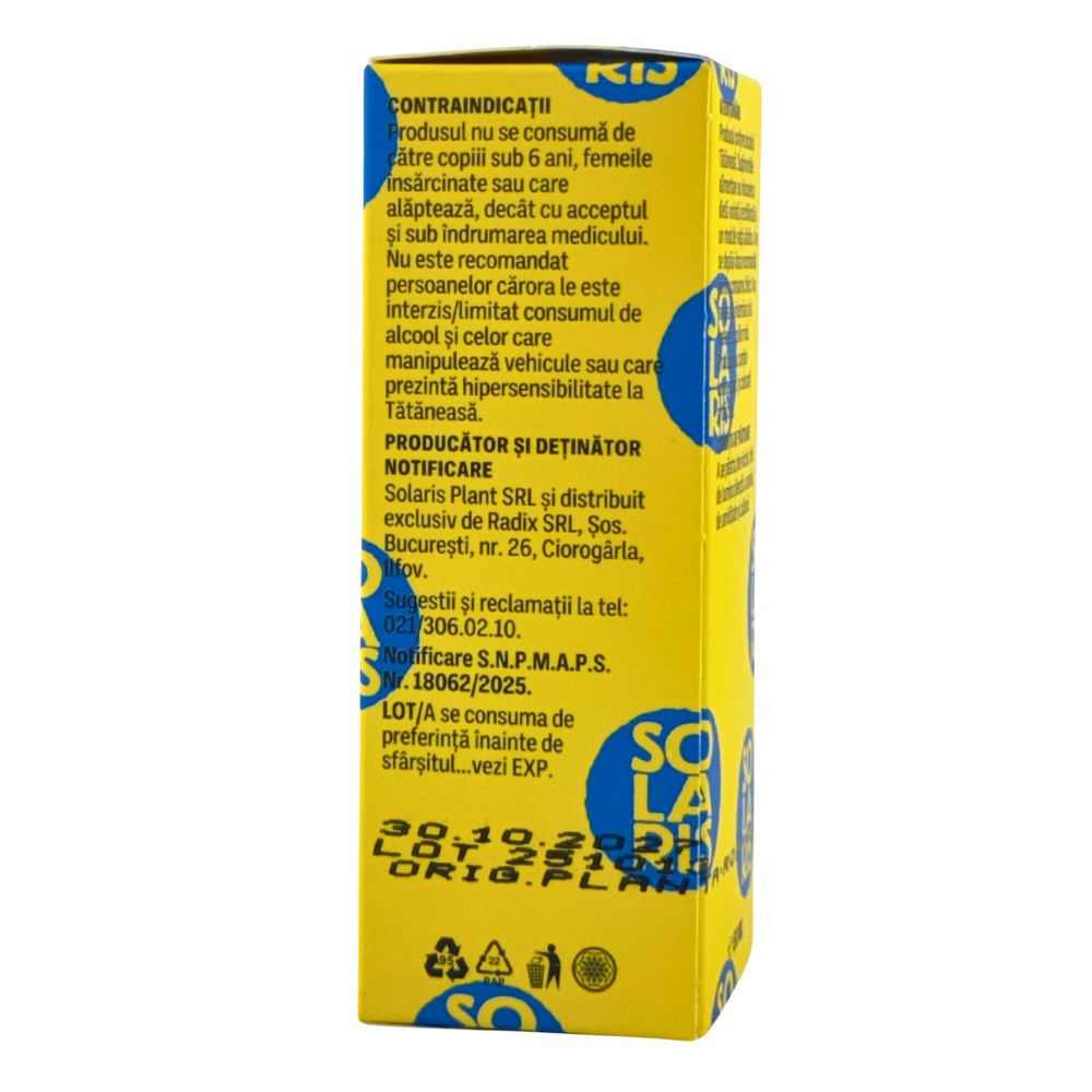 Produsul conține alcool și Tătăneasă. Suplimentele alimentare nu înlocuiesc o dietă variată și echilibrată și un mod de viață sănătos. A nu se depăși doza recomandată pentru consumul zilnic. A nu se lăsa la îndemâna și la vederea copiilor mici.