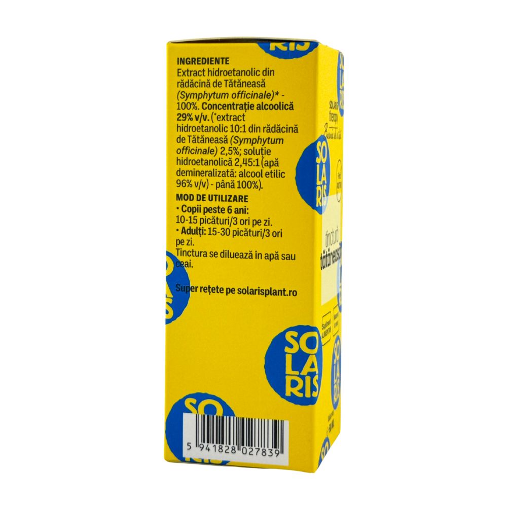 (*extract hidroetanolic 10:1 din rădăcină de Tătăneasă (Symphytum officinale) 2,5%; soluție hidroetanolică 2,45:1 (apă demineralizată: alcool etilic 96% v/v) – până la 100%).