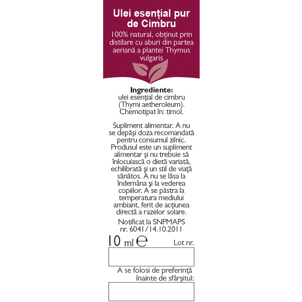ulei esențial de cimbru (Thymi aetheroleum), chemotipat în timol