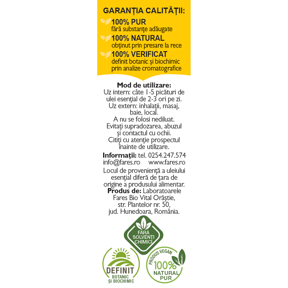 Produsul este verificat prin analize cromatografice și este un produs vegan.