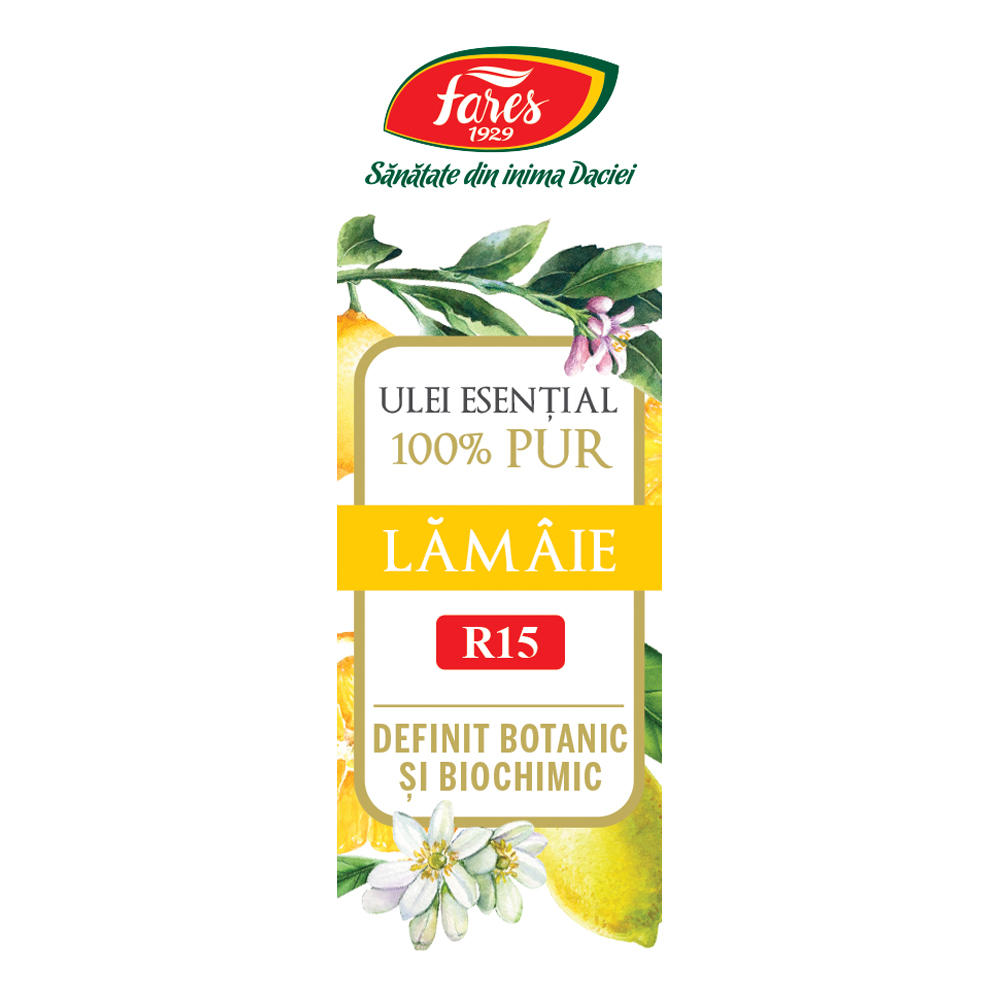 Uleiul esențial pur de Lămâie de la Fares este un produs natural, obținut prin presare la rece din coaja fructelor coapte de lămâie. Acesta este definit botanic și biochimic, fiind perfect pentru a adăuga o notă proaspătă și revigorantă.