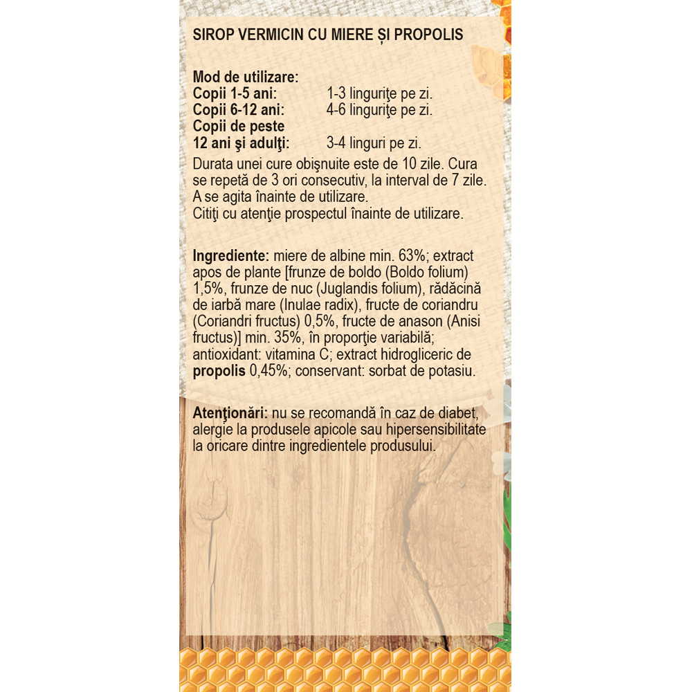 Sirop Vermicin cu miere, propolis si Vitamina C D73, 100 ml, Fares [5941141005705]