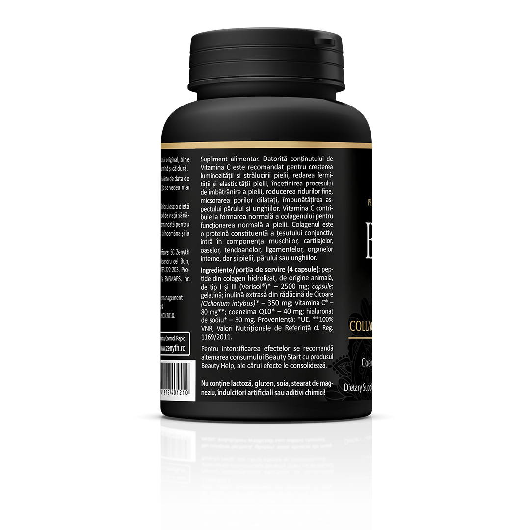 Supliment alimentar formulat cu peptide de colagen hidrolizat Verisol®, vitamina C, acid hialuronic și coenzima Q10, conceput pentru susținerea aspectului pielii și menținerea elasticității acesteia. Formula este completată cu inulină din cicoare și ingrediente atent selectate pentru îngrijirea pielii, părului și unghiilor.