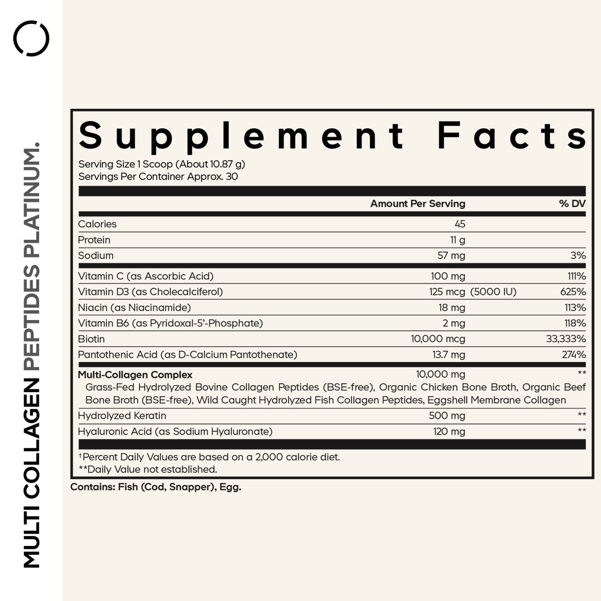 5 tipuri de peptide de colagen, inclusiv tipurile 1, 2, 3, 5 si 10, din 5 surse alimentare. Acest supliment de colagen ofera, de asemenea, 18 aminoacizi si are zero carbohidrati.