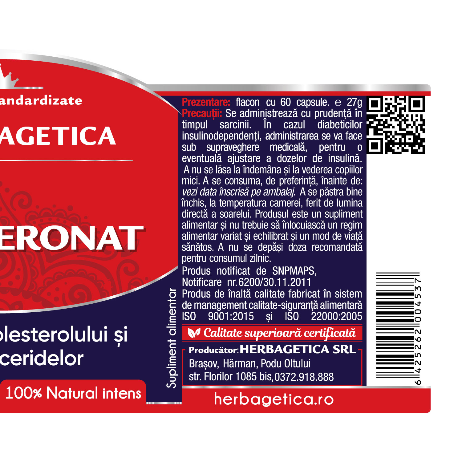 Produsul este un supliment alimentar și nu trebuie să înlocuiască un regim alimentar variat și echilibrat și un mod de viață sănătos.