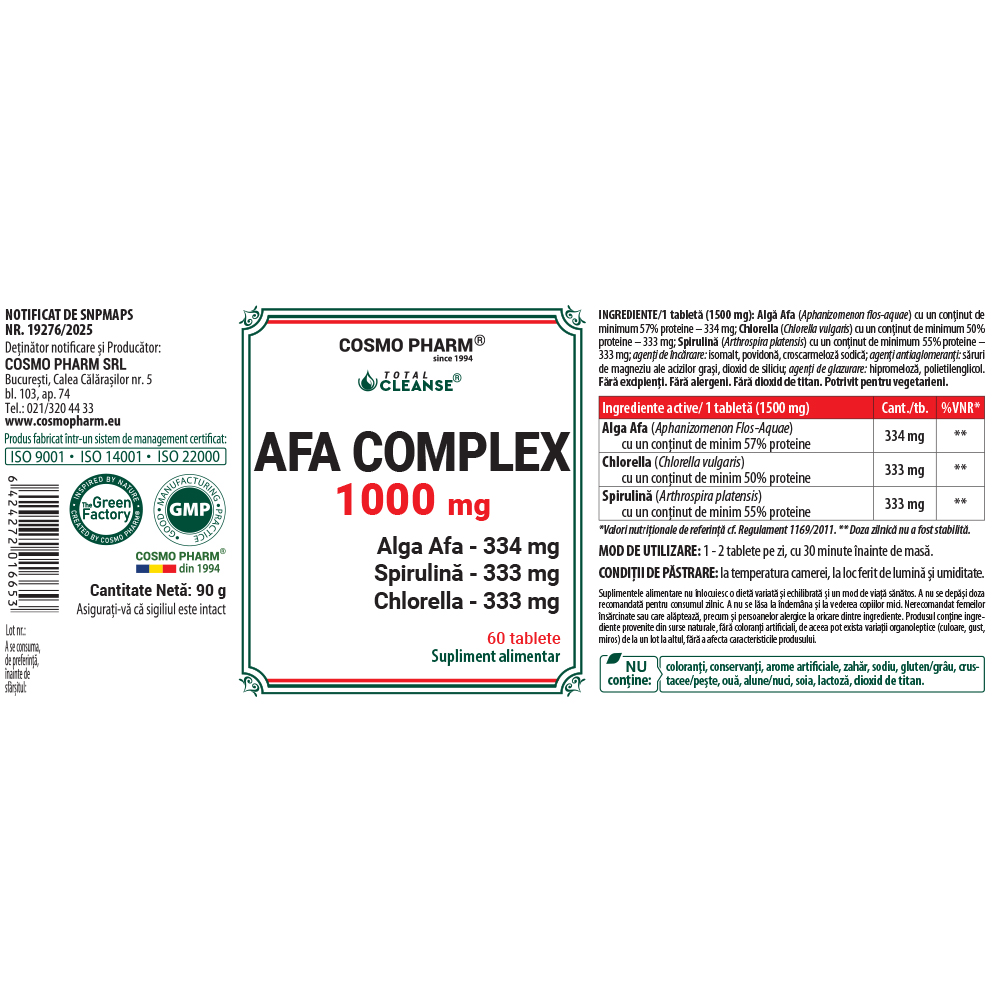 Ultima actualizare a informatiilor de prezentare pentru Alga Afa, 30 tablete, Cosmo Pharm a fost efectuata la data de 17-04-2026.  |  Raporteaza Descriere Gresita