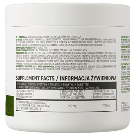 OstroVit Chlorella VEGE este un supliment alimentar de înaltă calitate, sub formă de tablete, obținut din pulbere de chlorella – o algă verde unicelulară apreciată pentru profilul său nutrițional bogat. Produsul este potrivit pentru persoanele care doresc să își completeze dieta zilnică cu ingrediente de origine naturală, fiind adecvat și pentru vegani.