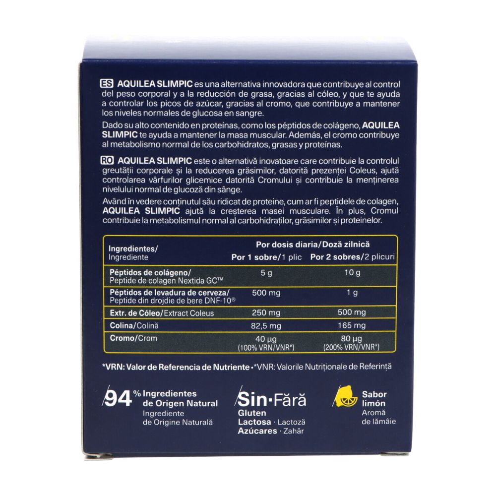 AQUILEA SLIMPIC este o alternativă inovatoare care contribuie la controlul greutății corporale și la reducerea grăsimilor, datorită prezenței Coleusului. Ajută la controlarea vârfurilor glicemice datorită cromului, care contribuie la menținerea nivelului normal de glucoză din sânge.