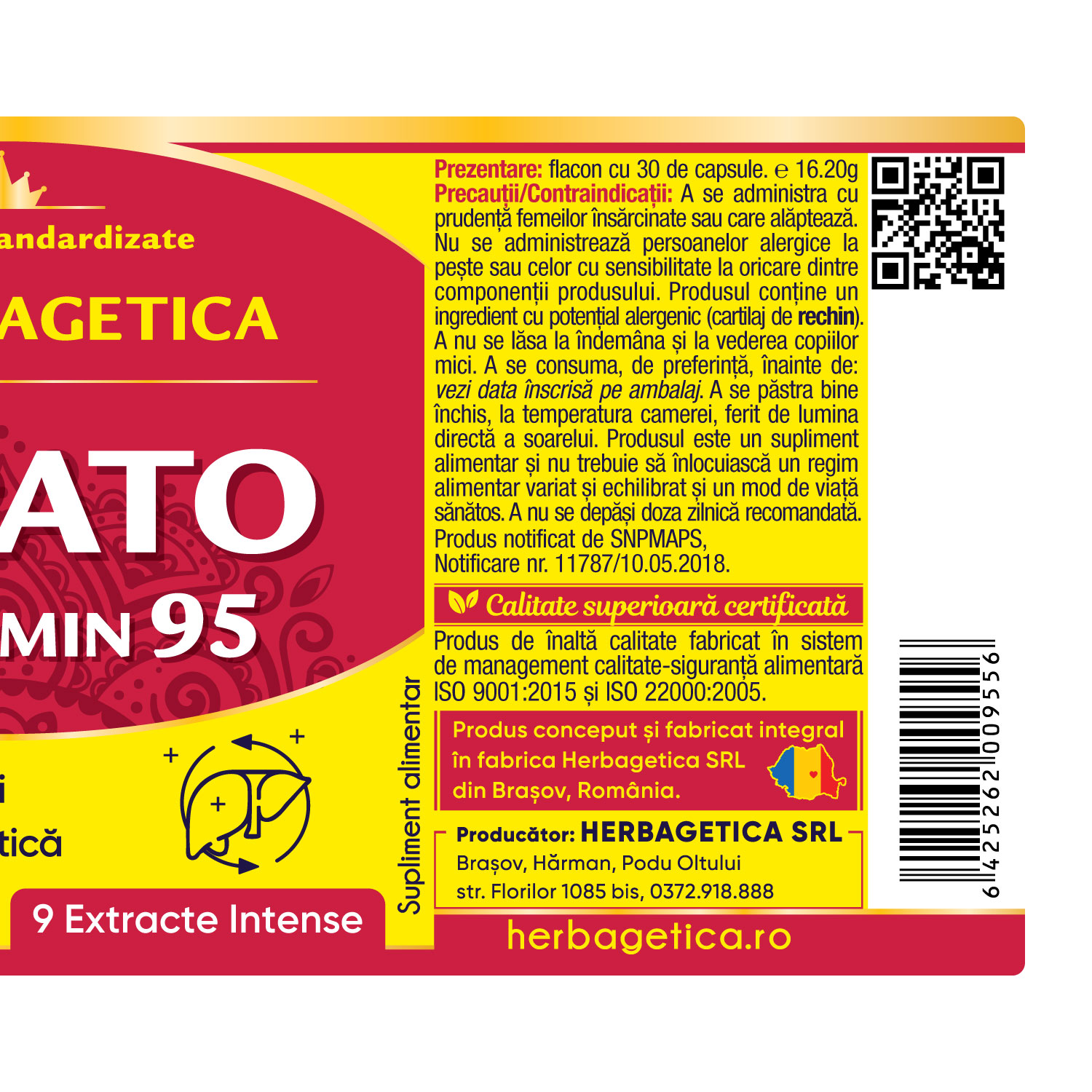 Curcumin95 C3 complex extract 66:1 din rizomi de Turmeric (Curcuma longa) cu 95% Curcuminoide 58mg;