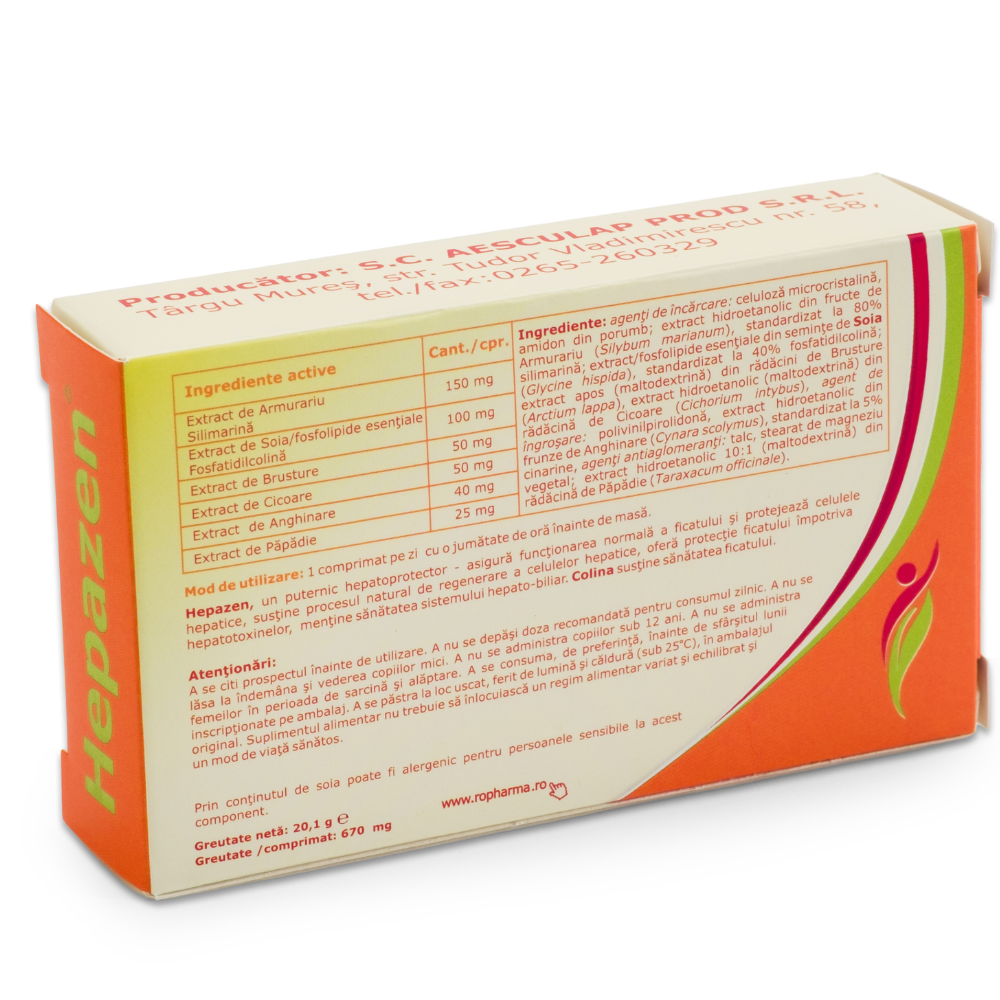 agenți de încărcare: celuloză microcristalină, amidon din porumb; extract hidroetanolic din fructe de Armurariu (Silybum marianum) standardizat la 80% silimarină; extract/fosfolipide esențiale din semințe de Soia (Glycine hispida); extract standardizat 40% fosfatidilcolină; extract apos din rădăcini de Brusture (Arctium lappa); extract hidroetanolic din rădăcină de Cicoare (Cichorium intybus); agent de îngroșare: polivinilpirolidonă; extract hidroetanolic din frunze de Anghinare (Cynara scolymus) standardizat la 5% cinarină; agenți antiaglomeranți: talc, stearat de magneziu vegetal; extract hidroetanolic 10:1 (maltodextrină) din rădăcină de Păpădie (Taraxacum officinale).