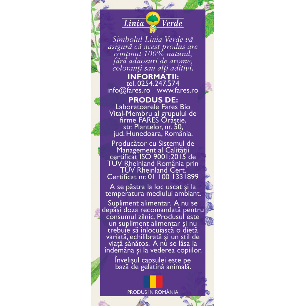 Formula include plante aromatice tradițional folosite în menținerea echilibrului fiziologic.