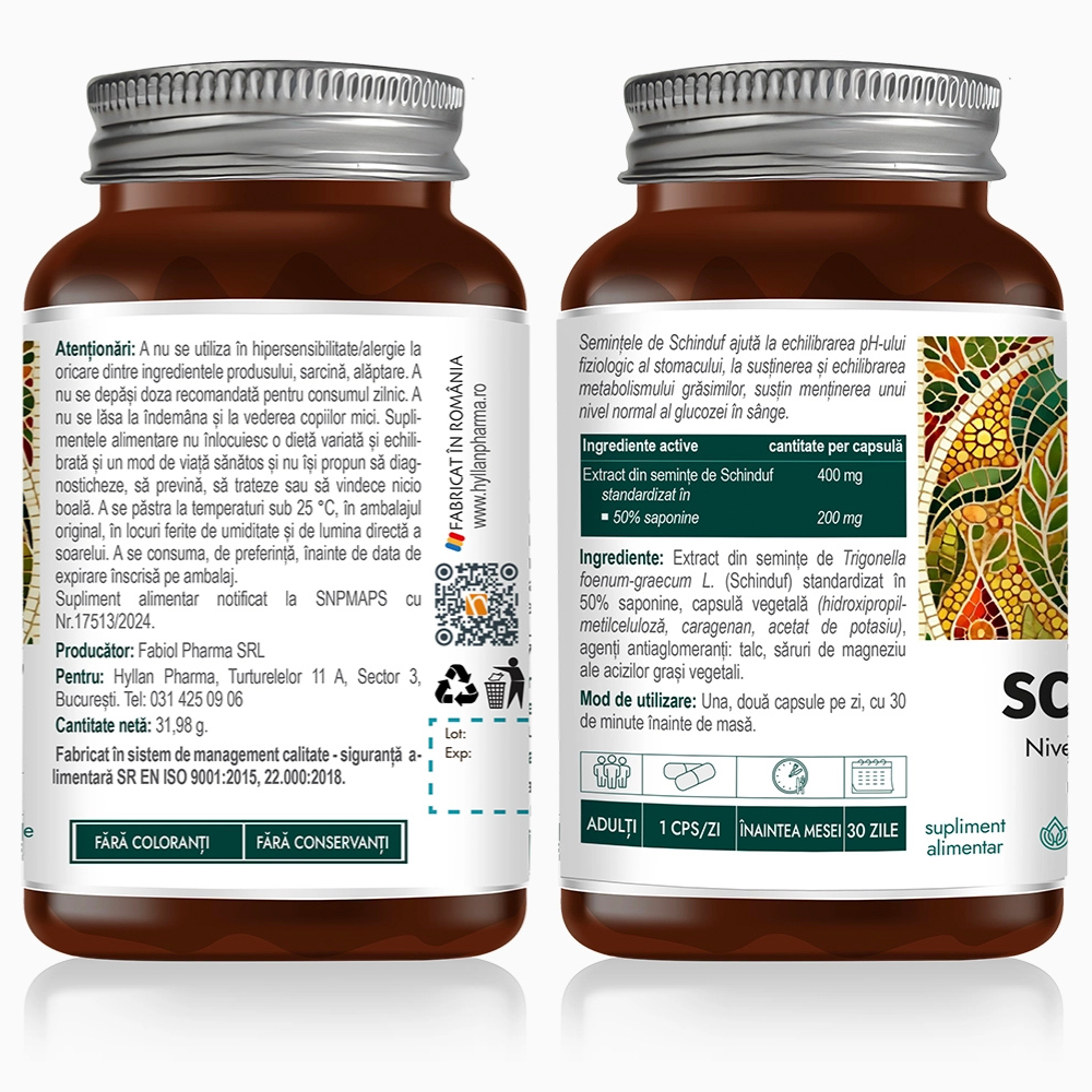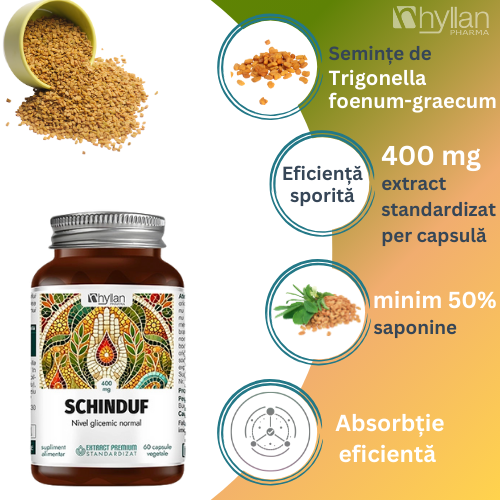 Supliment alimentar cu ingrediente de origine naturală, fără conservanți sau coloranți. Conține extract din semințe de Schinduf (Trigonella foenum-graecum), recunoscut în fitoterapia tradițională pentru contributia in susținerea funcției pancreatice și glicemice.