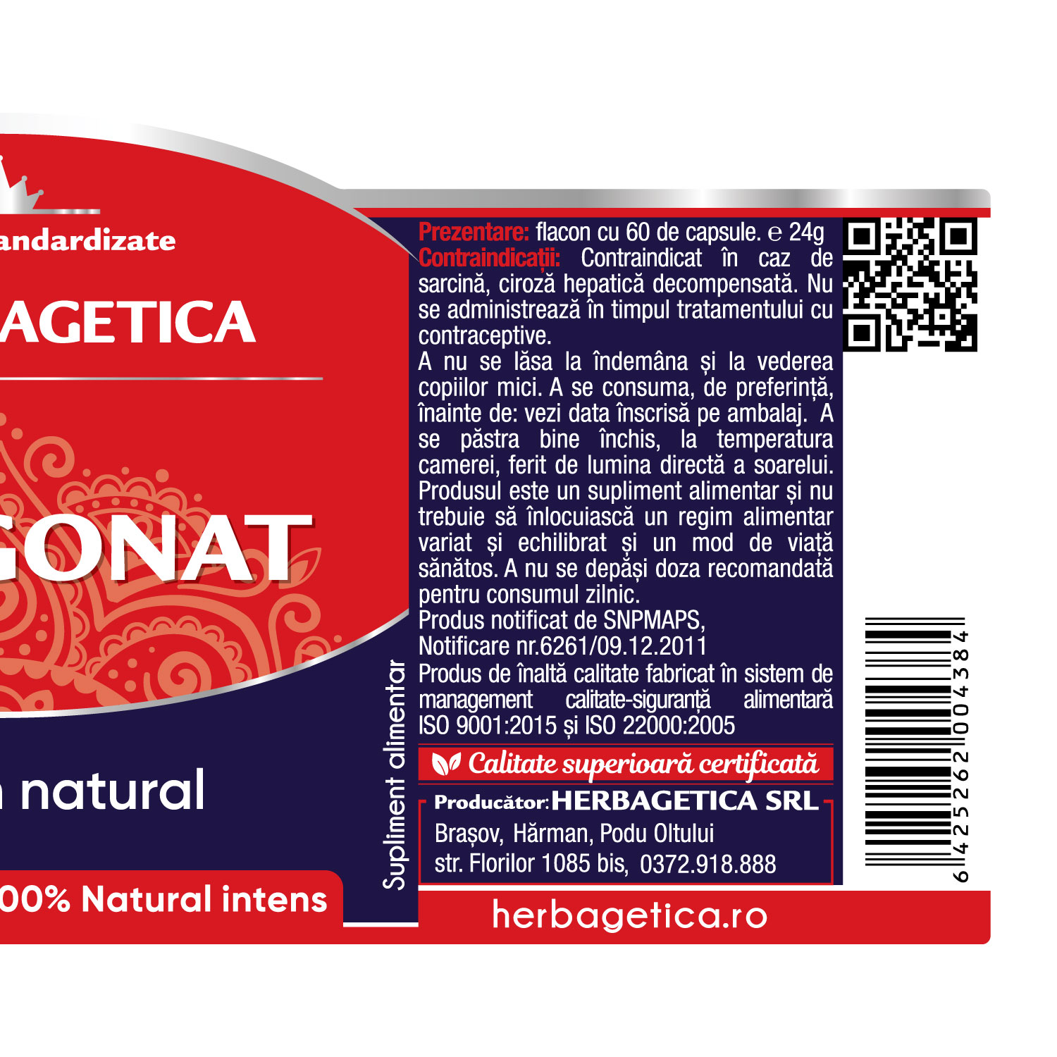 Produsul este un supliment alimentar și nu trebuie să înlocuiască un regim alimentar variat și echilibrat și un mod de viață sănătos.