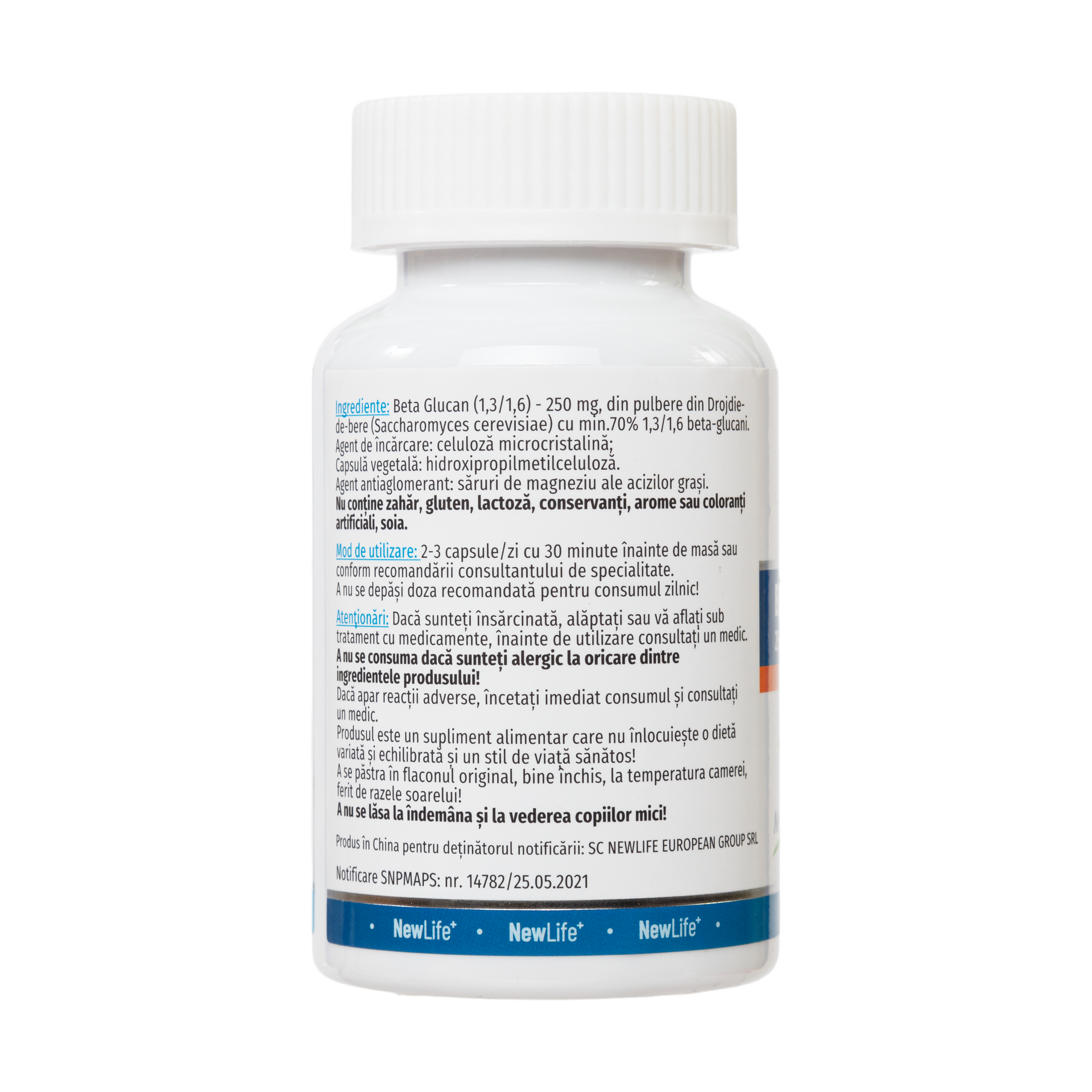 Supliment alimentar cu beta-glucan (1,3/1,6) din drojdie de bere (Saccharomyces cerevisiae), standardizat la minimum 70% beta-glucan. Produsul este disponibil sub formă de capsule vegetale.