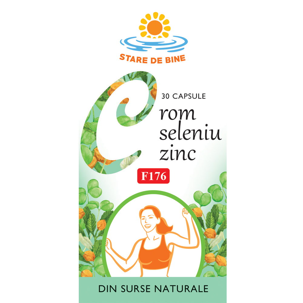 Crom asigurand 500% din VNR*, 100 mcg Seleniu asigurand 182% din VNR* si 10,25 mg Zinc asigurand 102,5% din VNR*. (VNR* = valoare nutritionala de referinta).