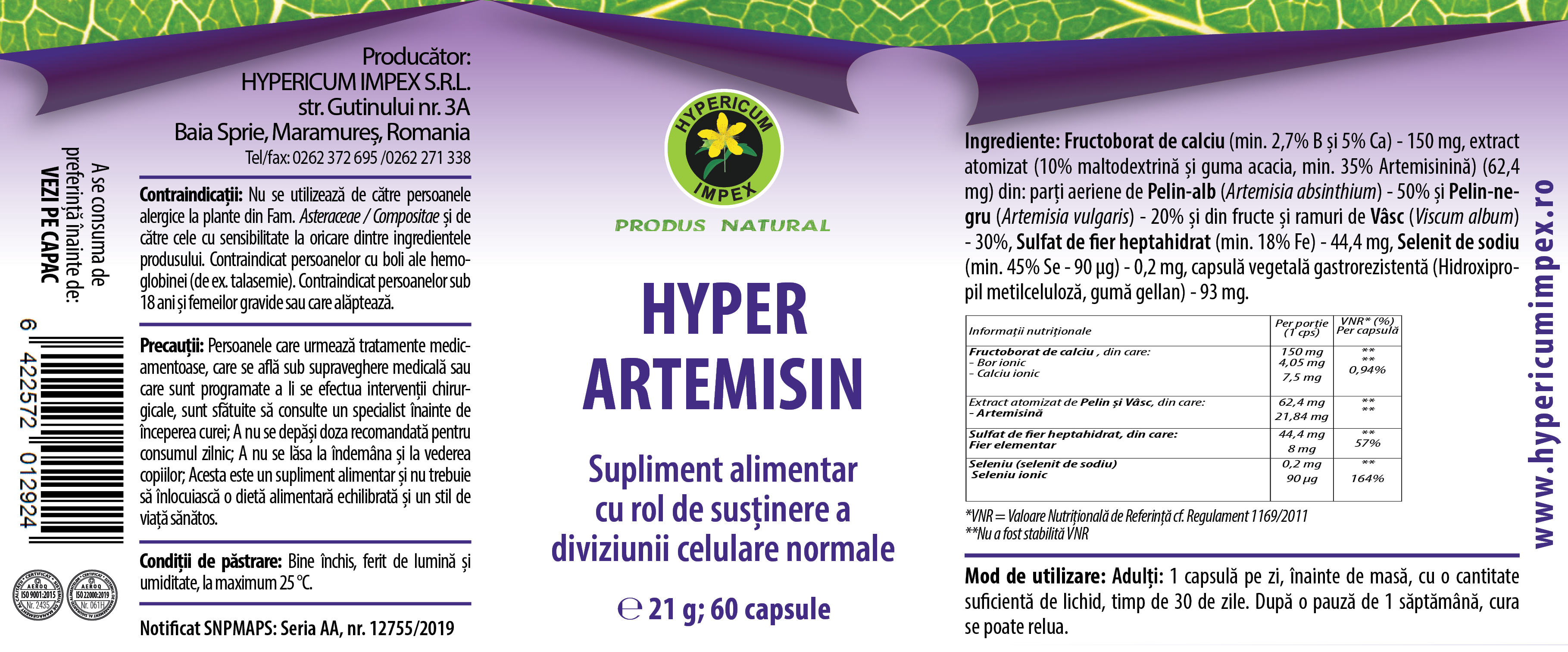 Acesta este un supliment alimentar si nu trebuie sa inlocuiasca o dieta alimentara echilibrata si un stil de viata sanatos.