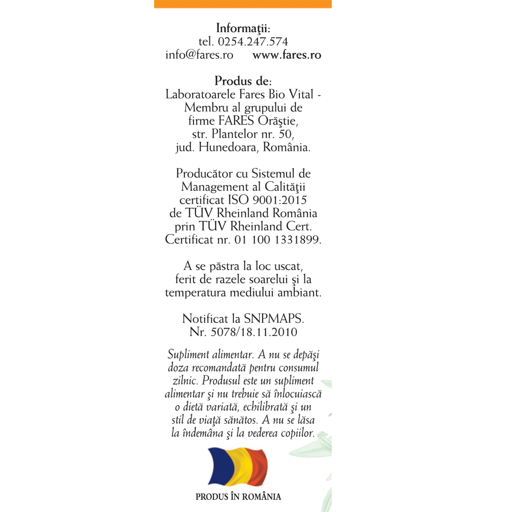Suplimentele alimentare nu înlocuiesc o dietă variată și echilibrată și un stil de viață sănătos.