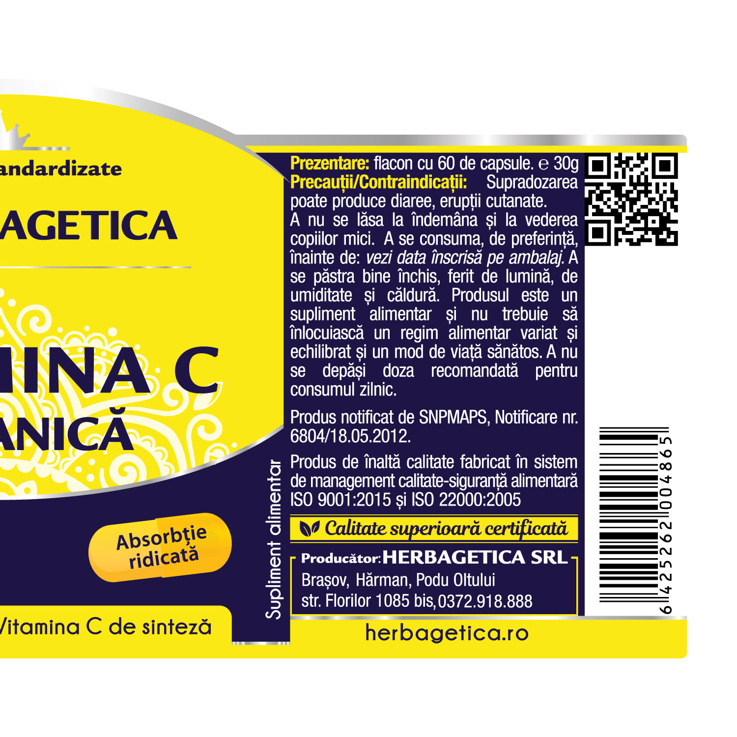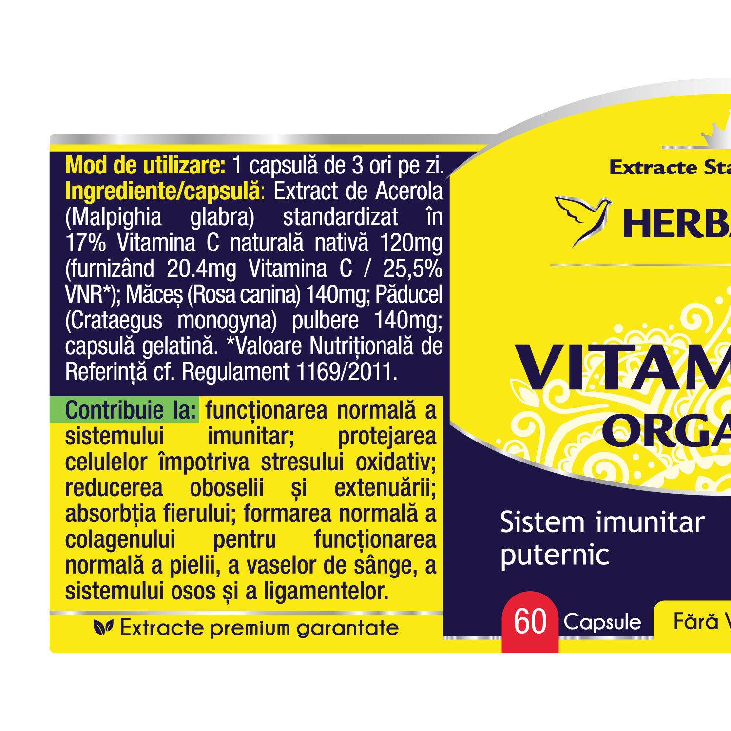 Vitamina C Organica, 60 capsule, Herbagetica [6425262004865]