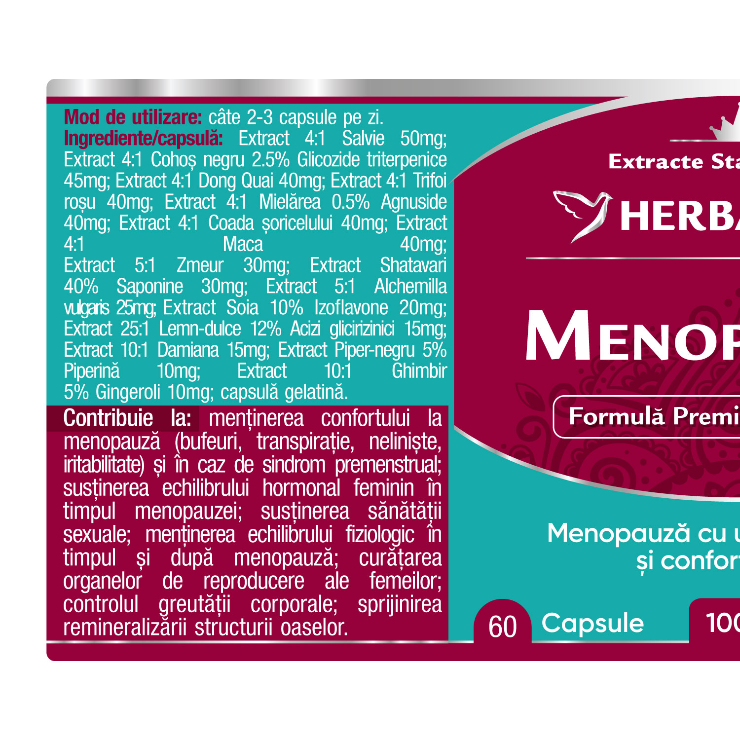 Contribuie la: menținerea confortului la menopauză (bufeuri, transpirație, neliniște, iritabilitate) și în caz de sindrom premenstrual; susținerea echilibrului hormonal feminin în timpul menopauzei; susținerea sănătății sexuale; menținerea echilibrului fiziologic în timpul și după menopauză; curățarea organelor de reproducere ale femeilor; controlul greutății corporale; sprijinirea remineralizării structurii oaselor.