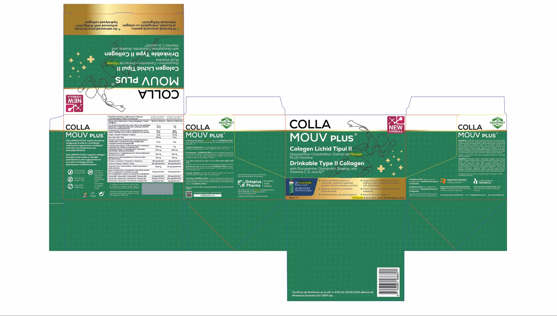 CollaMouv Plus® este un supliment alimentar și nu trebuie utilizat ca substitut pentru o dietă echilibrată și variată și un stil de viață sănătos.