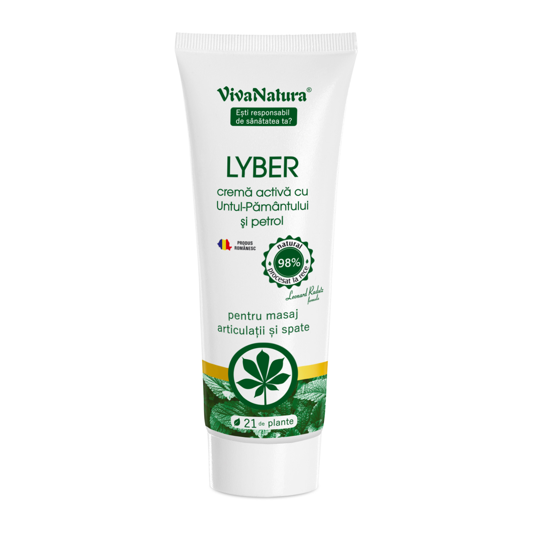 Crema Lyber poate fi folosită pentru masajul zonei articulaţiilor şi spatelui cu efect calmant şi relaxant. Este un produs natural care are la bază o formulă unică inspirată din retete tradiţionale şi conţine extracte din plante recunoscute pentru efectele lor benefice: untul pământului, arnică, boswellia, harpagophytum, ghimbir, muştar, castan și o fracție specială à obținută din petrol.