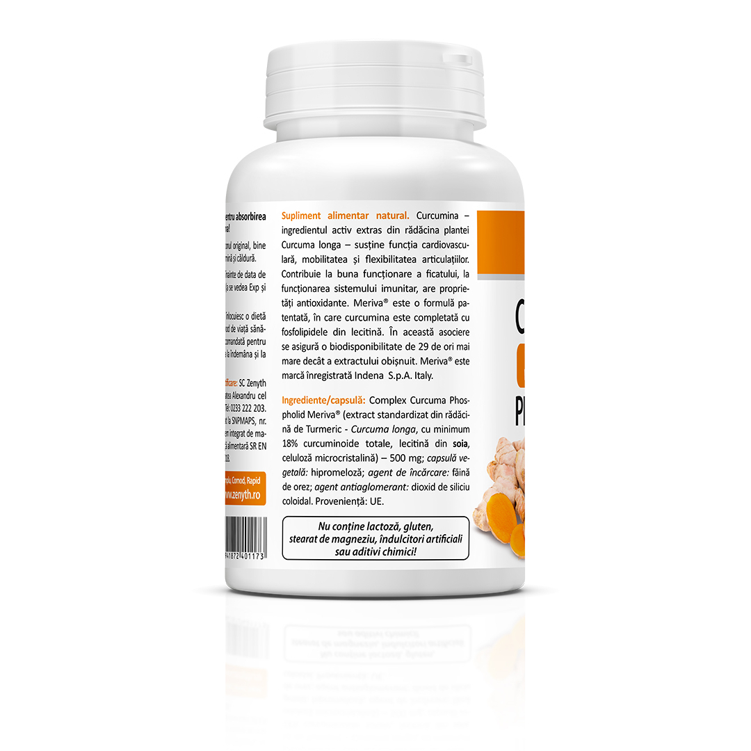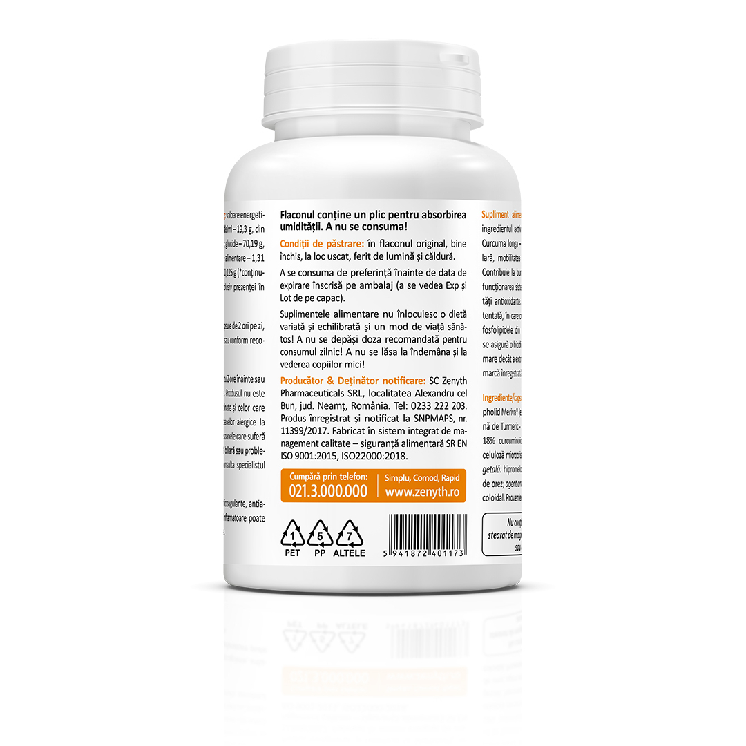 Supliment alimentar natural cu extract de turmeric în formulă Meriva®, pentru absorbție optimizată.