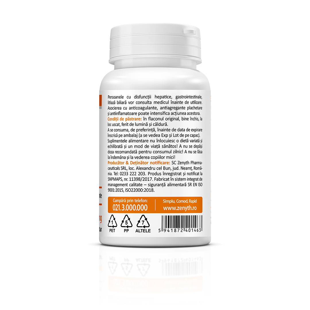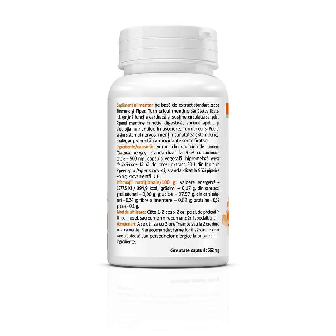 Supliment alimentar pe bază de extract standardizat de turmeric și piper, formulat pentru absorbție optimizată.