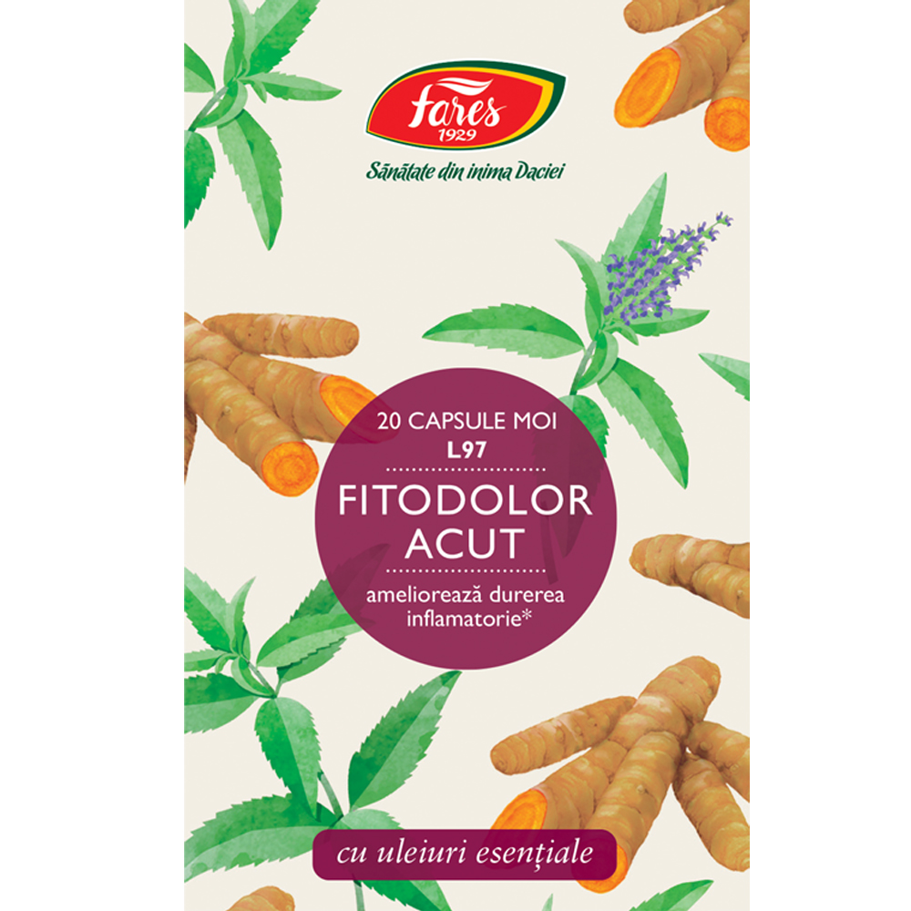 Suplimentul alimentar Fitodolor Acut de la Fares este un produs sub formă de capsule moi, cu uleiuri esențiale de turmeric și lemon verbena. Formula sa este concepută pentru a contribui la o senzație de confort în corp.
