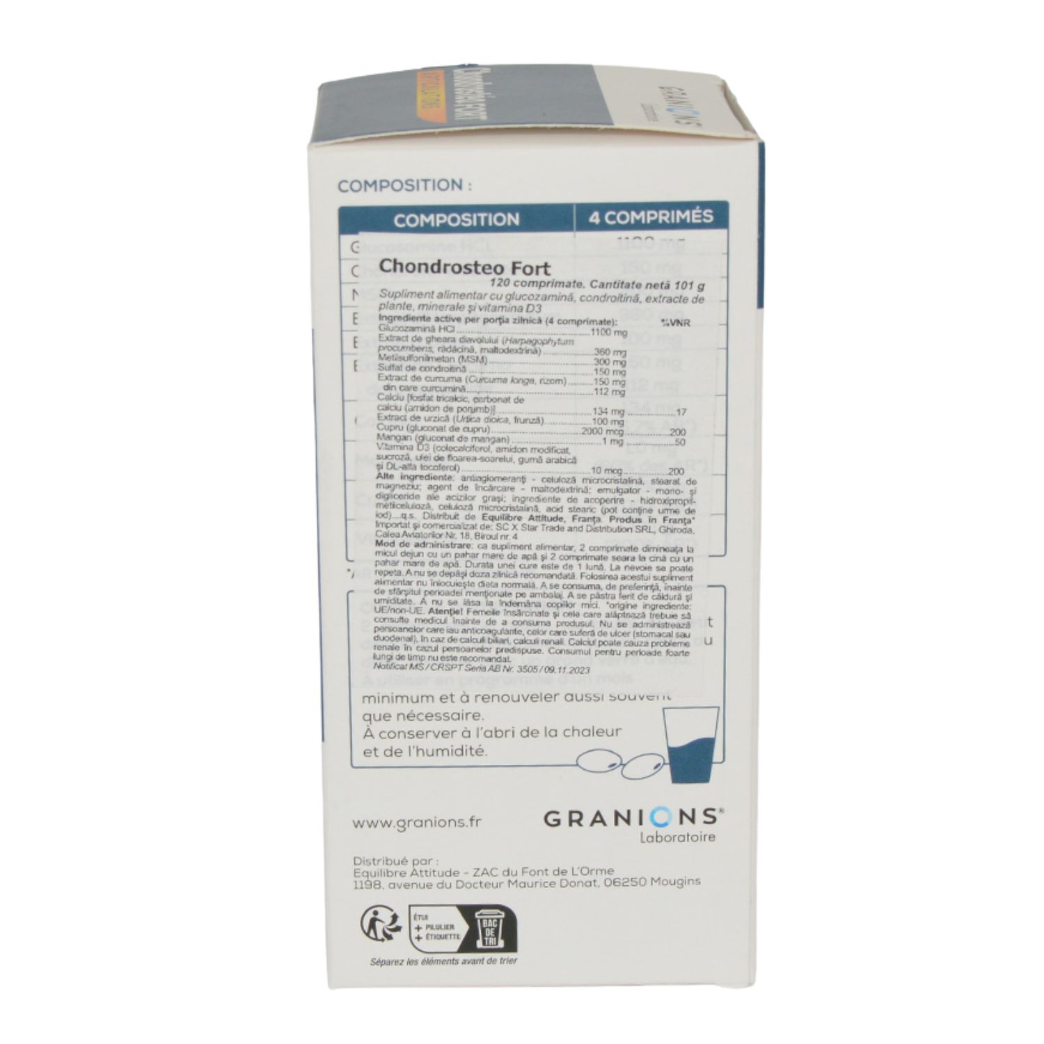 Chondrosteo+ Fort oferă o formulă complexă ce combină glucozamină, condroitină, MSM și extracte vegetale precum gheara-diavolului, urzica și curcuma, ingrediente atent selecționate pentru susținerea mobilității și confortului articular.
