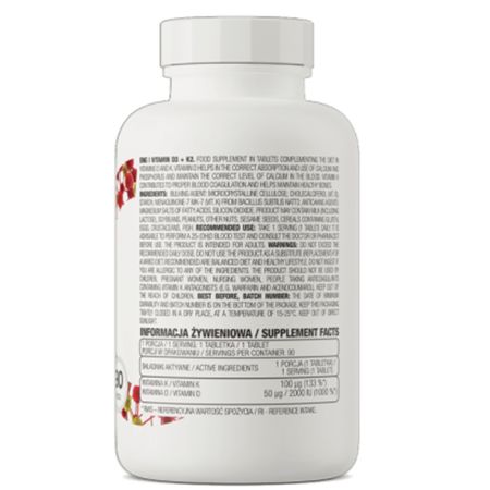 Vitamin D3 + K2, 90 tablete, OstroVit [5902232611960]