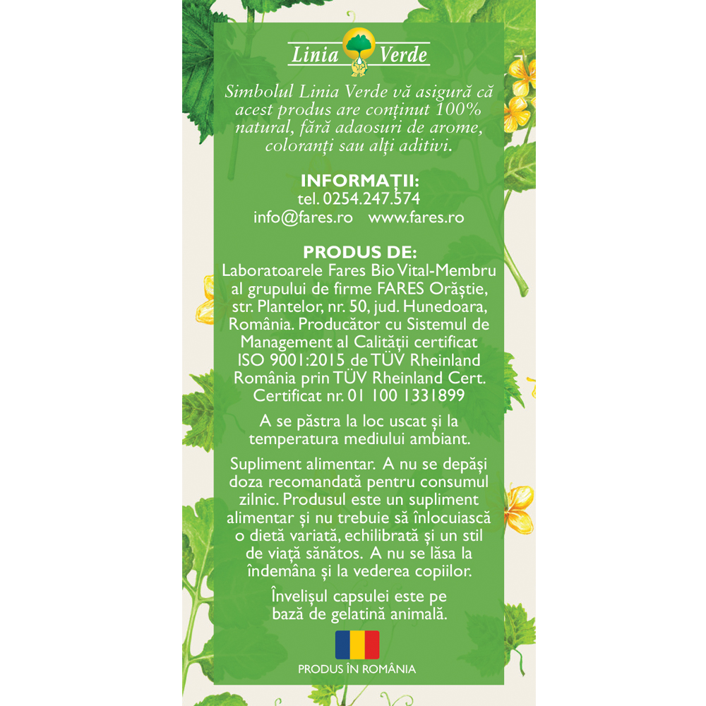 A nu se depăși doza recomandată pentru consumul zilnic. Produsul este un supliment alimentar și nu trebuie să înlocuiască o dietă variată, echilibrată și un stil de viață sănătos. A se păstra la loc uscat, la temperatura mediului ambiant și a nu se lăsa la îndemâna și la vederea copiilor mici.