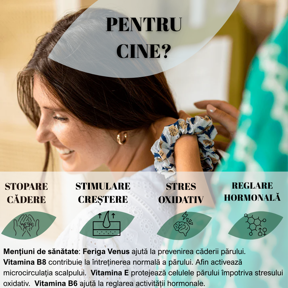 Vizează principalele cauze ale căderii părului: hormonale, ereditare sau asociate stresului, cu acțiune în două etape cu 95% grad de satisfacție*: