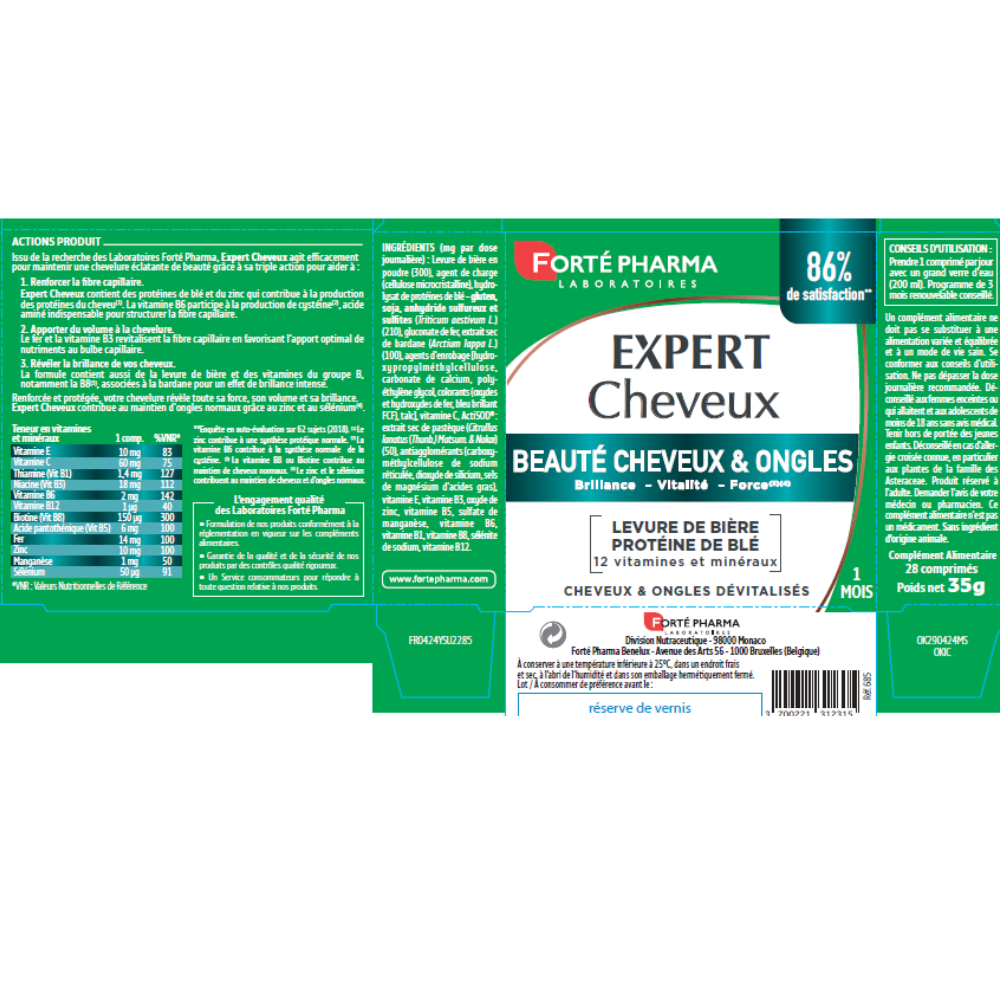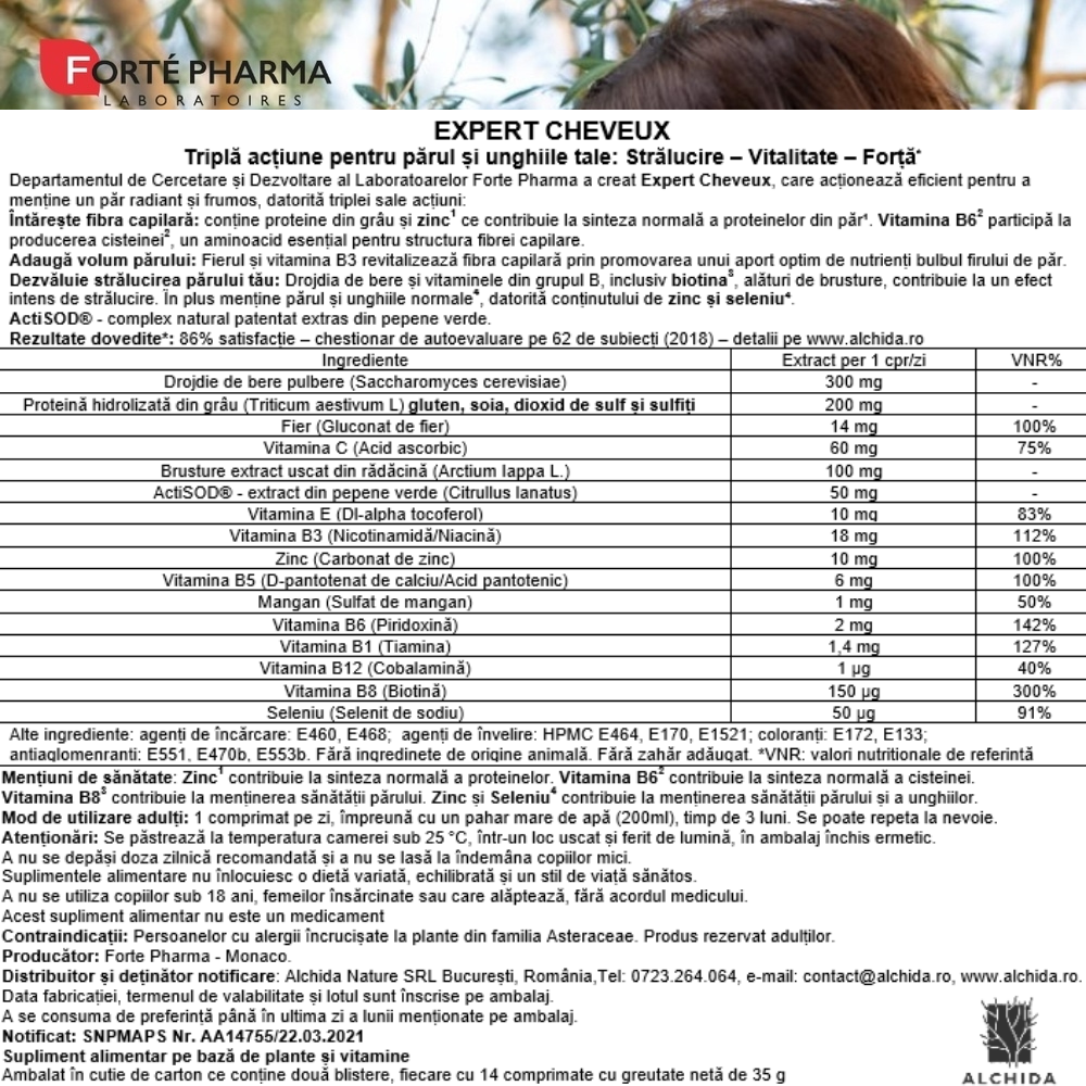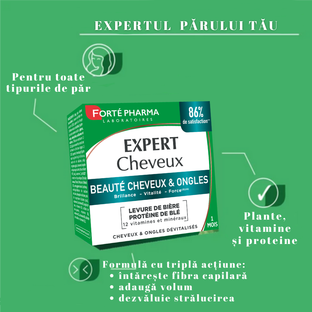 Departamentul de Cercetare și Dezvoltare al Laboratoarelor Forte Pharma a creat Expert Cheveux, care acționează eficient pentru a menține un păr radiant și frumos, datorită triplei sale acțiuni