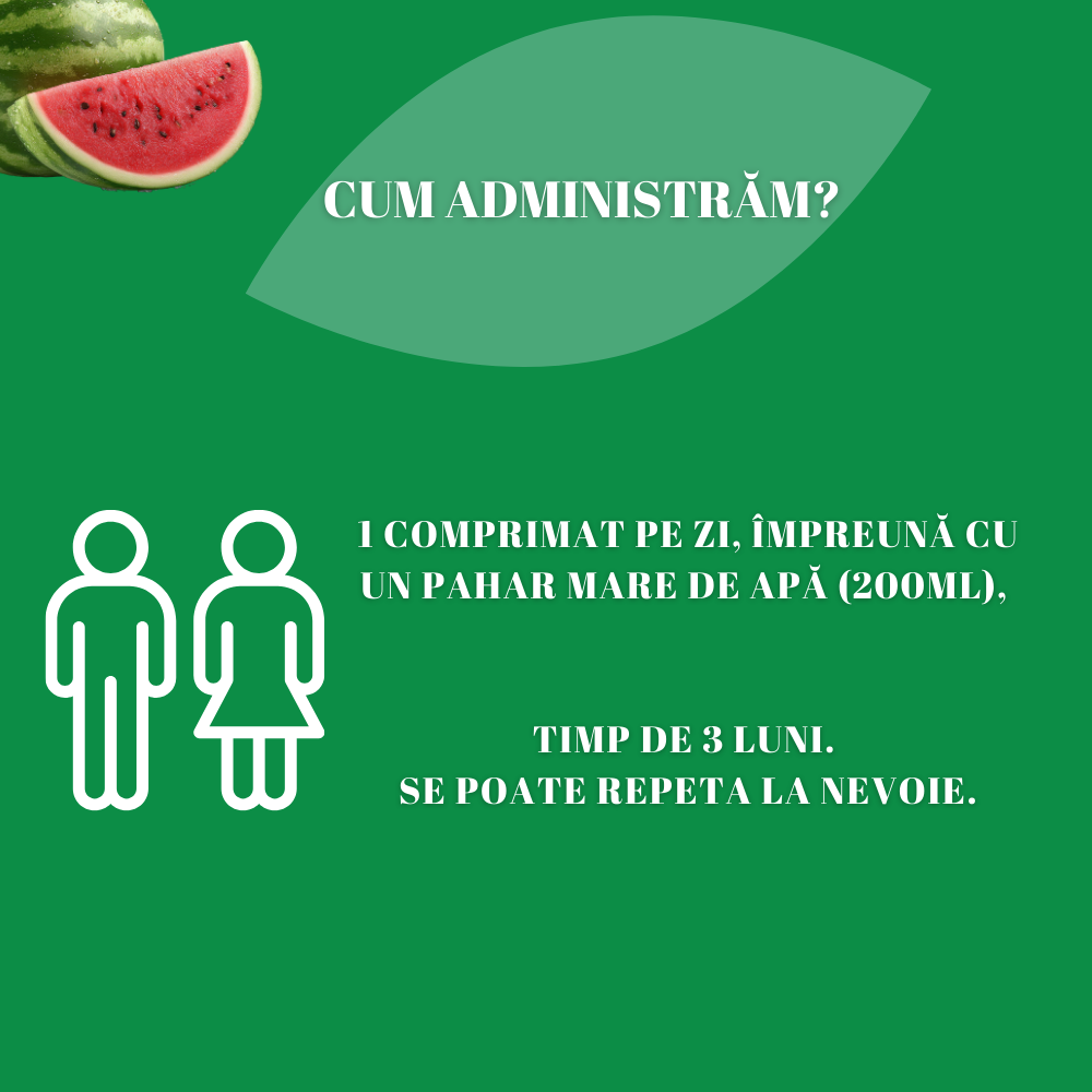 Mod de utilizare adulți: 1 comprimat pe zi, împreună cu un pahar mare de apă (200ml), timp de 3 luni. Se poate repeta la nevoie.