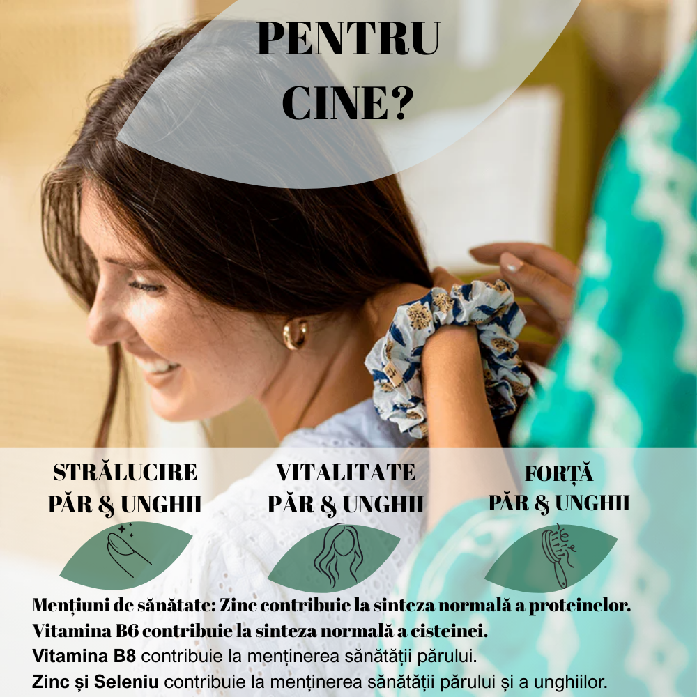 Vitamina B83 contribuie la menținerea sănătății părului. Zinc și Seleniu4 contribuie la menținerea sănătății părului și a unghiilor.