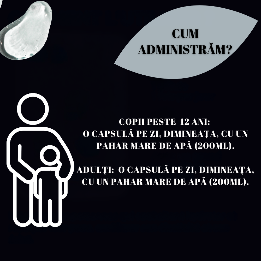 Mod de utilizare adulți și copii peste 12 ani: o capsulă pe zi, dimineața, cu un pahar mare de apă (200ml).