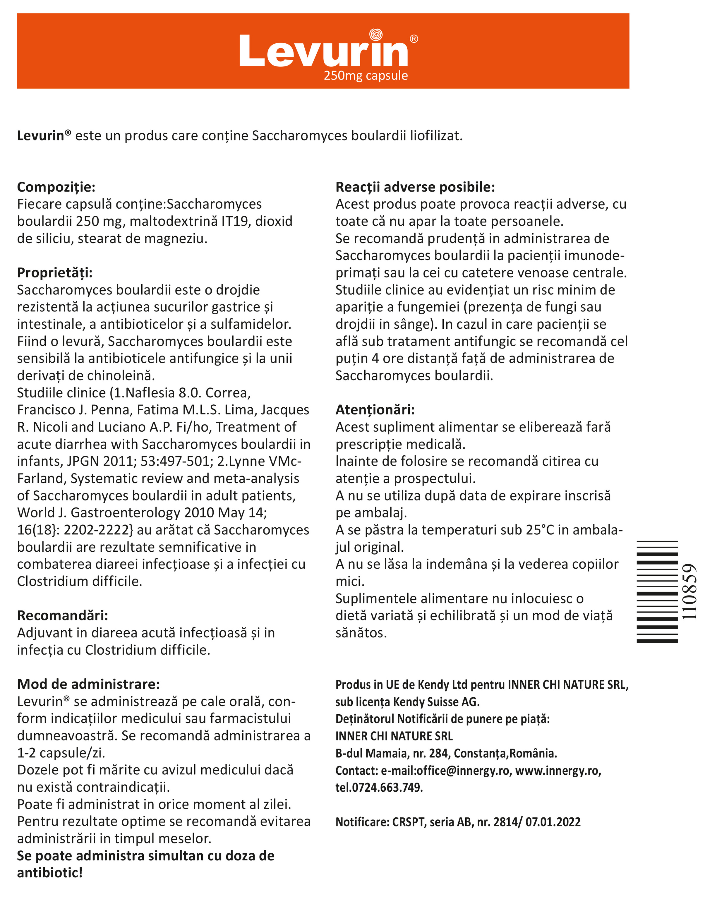 Levurin® este un produs care conține Saccharomyces boulardii liofilizat.