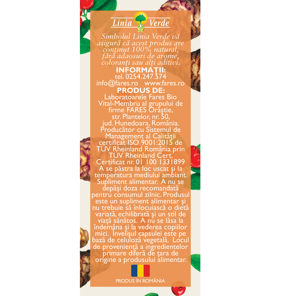 A nu se depăși doza recomandată pentru consumul zilnic. Produsul este un supliment alimentar și nu trebuie să înlocuiască o dietă variată și echilibrată. A se păstra la loc uscat, ferit de lumină directă și la o temperatură a mediului ambiant. A nu se lăsa la îndemâna și la vederea copiilor mici.