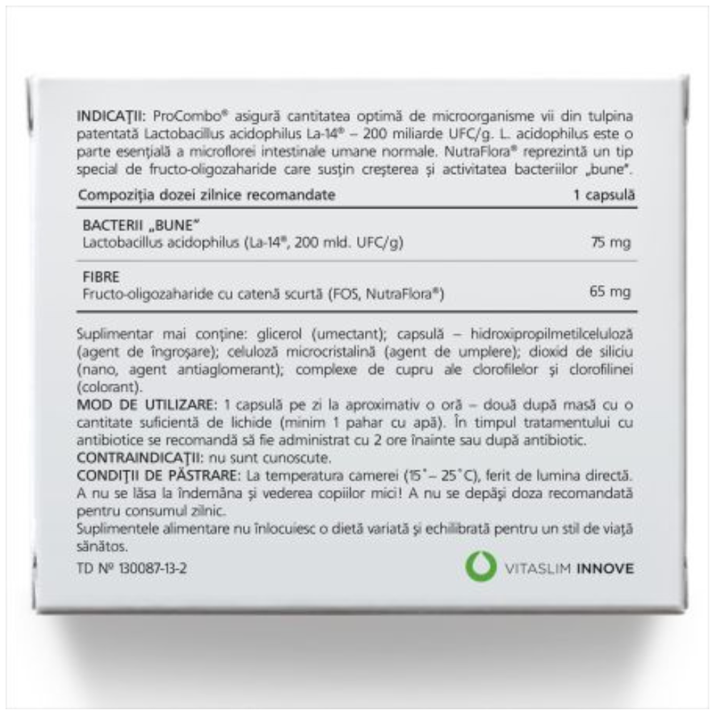 Ultima actualizare a informatiilor de prezentare pentru ProCombo Sinbiotic, 10 capsule, Vitaslim a fost efectuata la data de 17-04-2026.  |  Raporteaza Descriere Gresita
