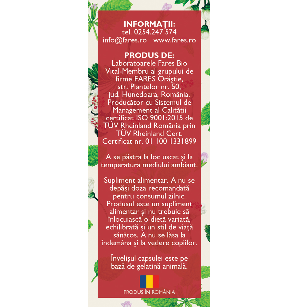 Produsul este un supliment alimentar si nu inlocuieste o dieta variata si echilibrata.
