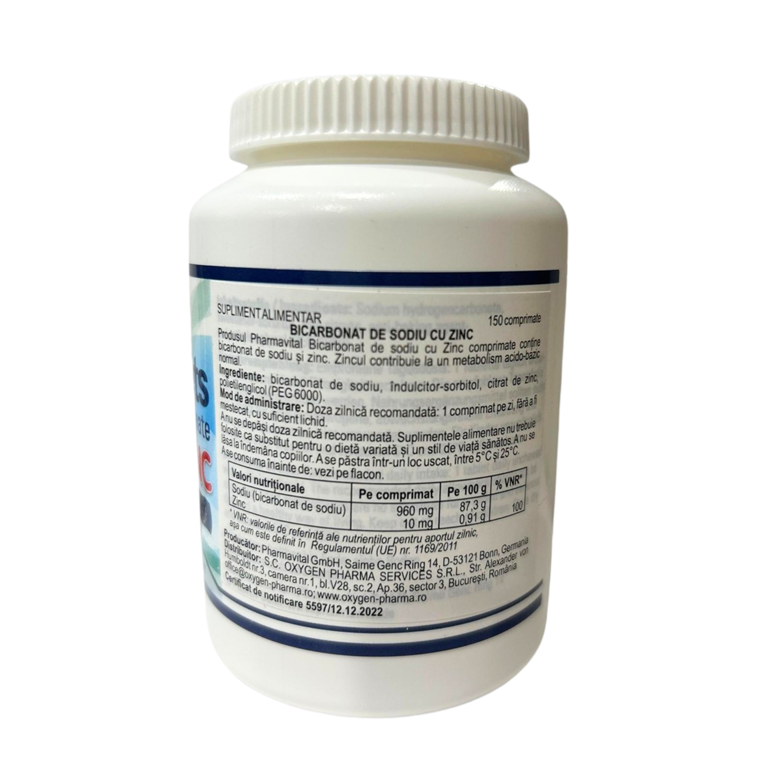 Bicarbonat de sodiu cu zinc, 150 tablete, PharmaVital