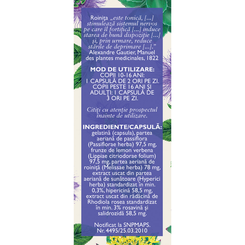 Conține extracte standardizate din plante medicinale cu efect calmant și tonic nervos