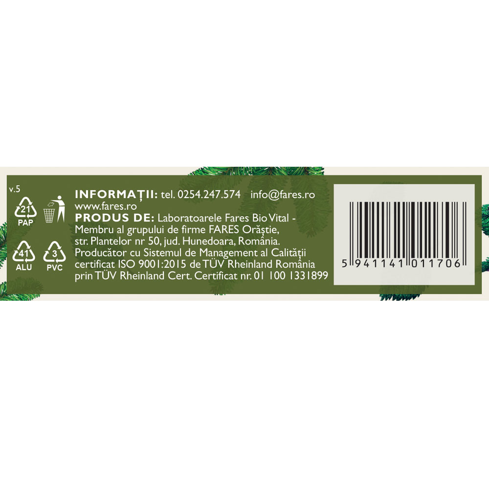 Conține uleiuri esențiale din mentă, eucalipt, brad, portocale și cuișoare.