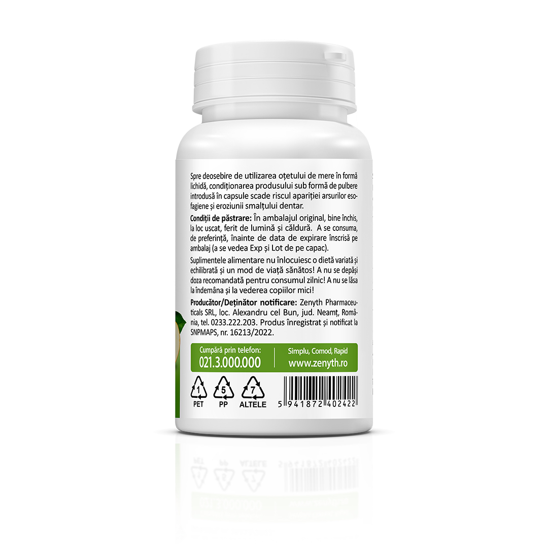 oÈ›et din cidru de mere (Malus domestica), 40:1, 20% polifenoli, 10% acid acetic – 500 mg